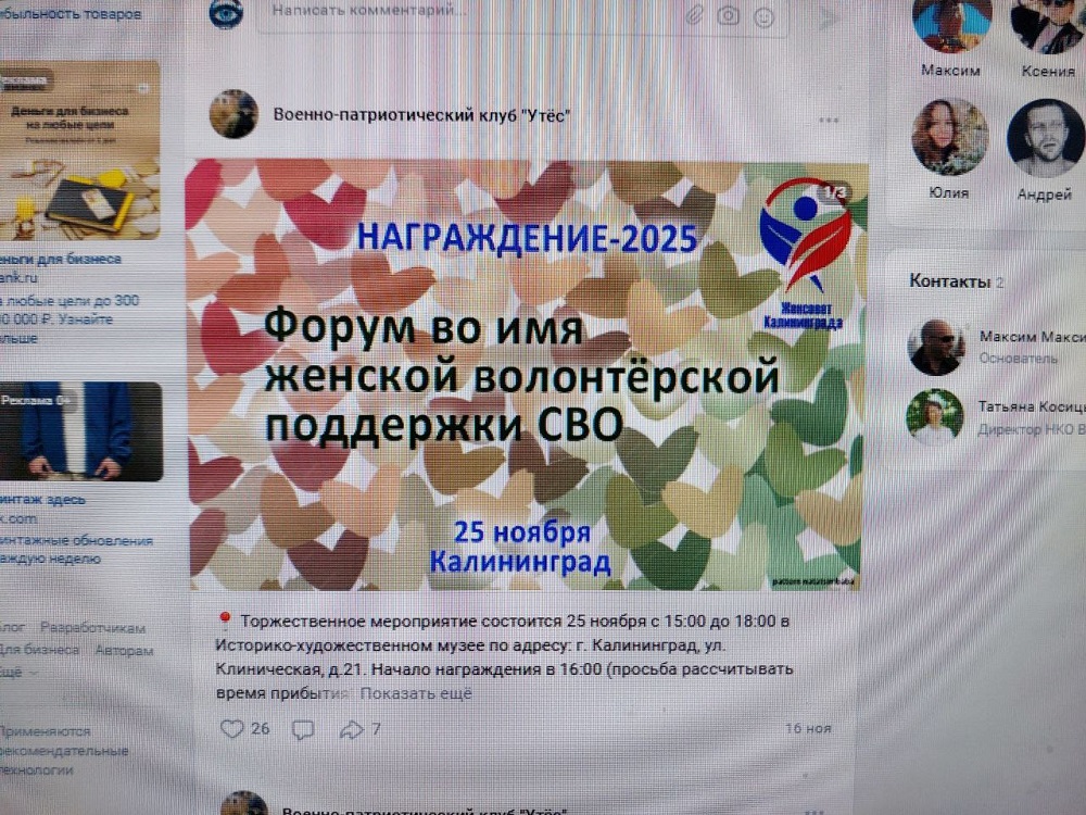 Придумать название форума для награждения женщин-волонтеров помощи СВО. В течение 3-х лет они делали своими руками сети, шили одежду, собирали деньги для солдат. Бескорыстно и заботливо.
