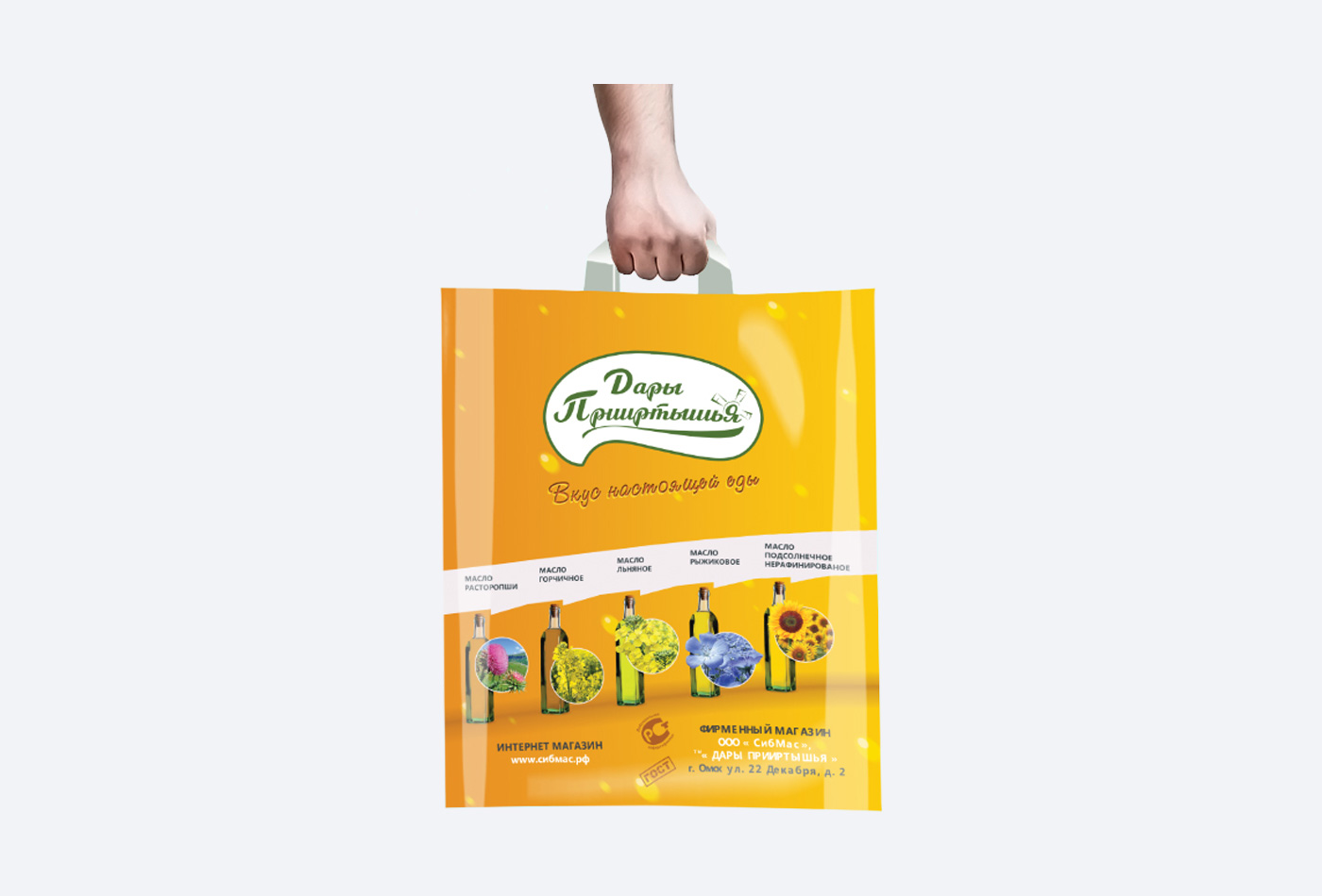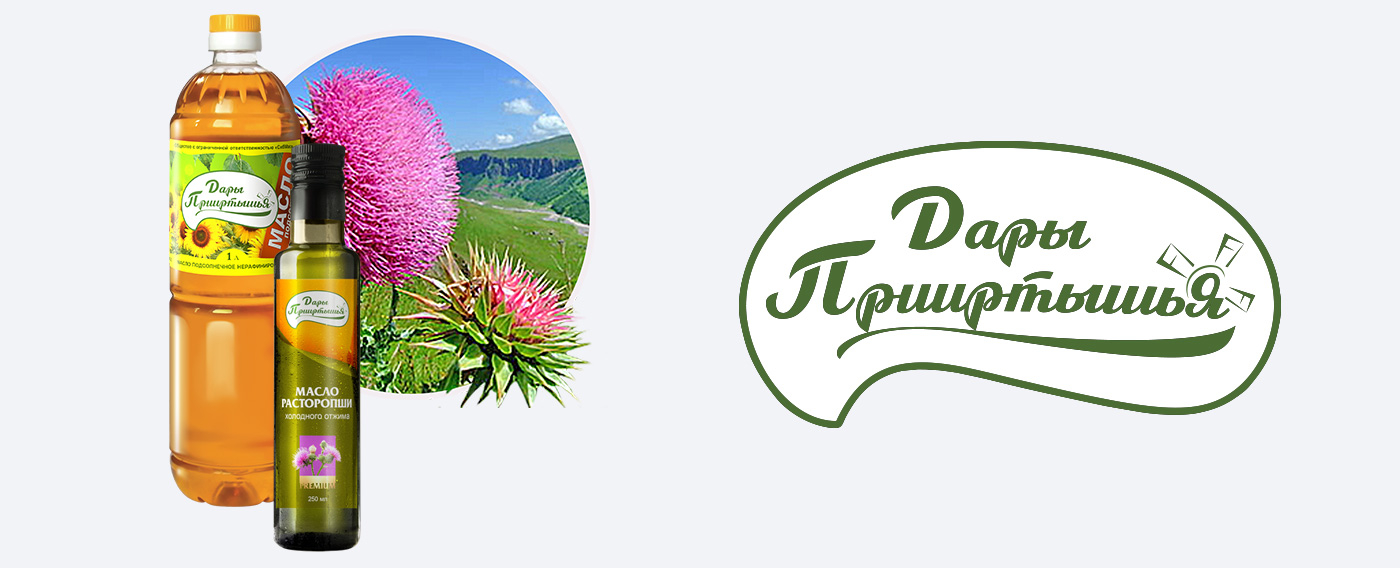 Еще графические работы: Создание дизайн-макета полиграфического буклета для раздачи в руки посетителям выставки, создание дизайн-макета фирменного пакета, а еще для узнаваемости бренда и потока клиентов за маслом расторопши жутко лечебным и просто полезным льняным маслом в фирменный магазин отрисовали графический дизайн баннера на фасад здания. И надеемся, что все 350 тыс. посетителей выставки, станут покупателями натурального вкусного масла ТМ "Дары Прииртышья" по указателю с красочных, рекламных баннеров от нашей веб-студии "АК "Атолл".