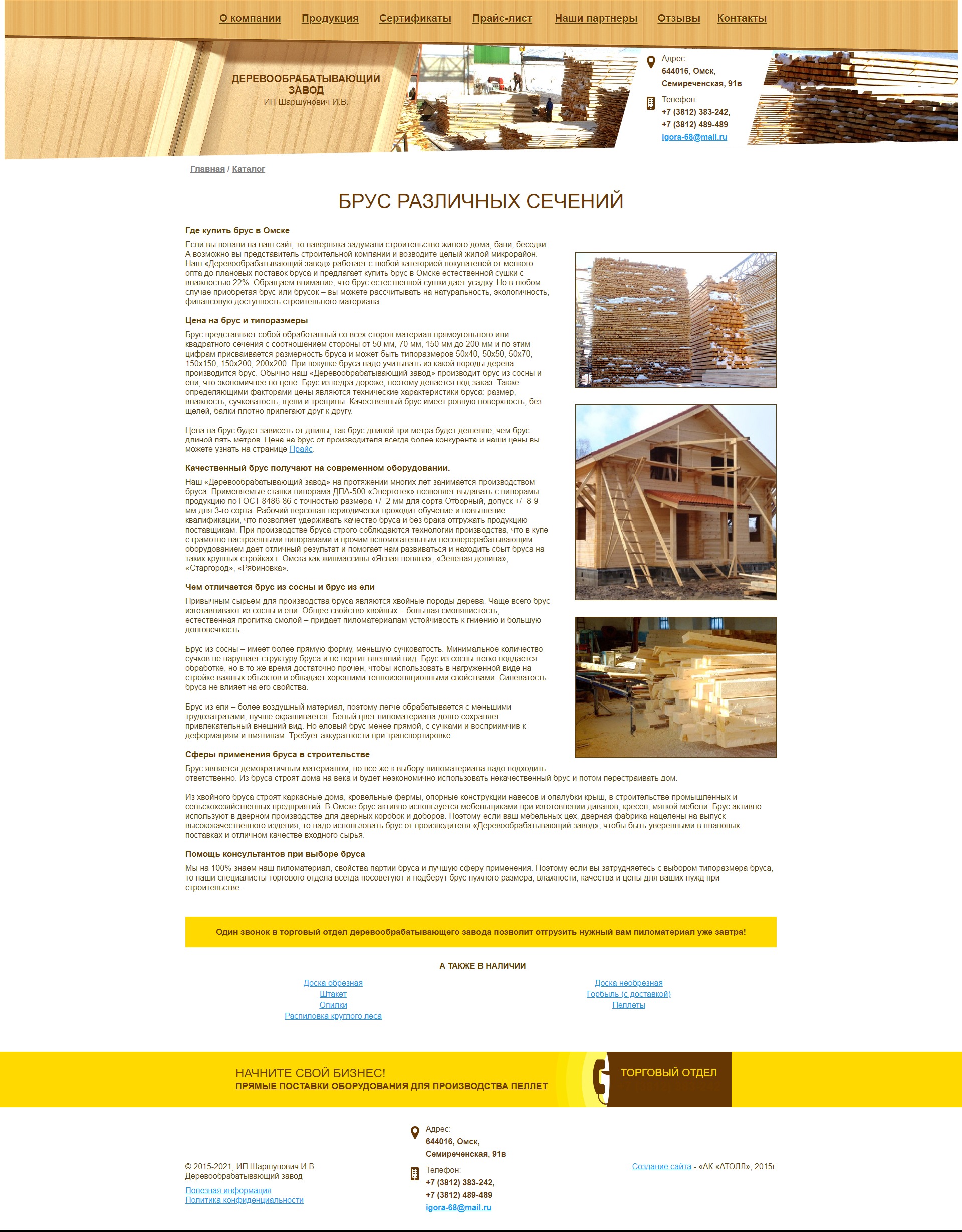 Работа с нуля до полной сдачи готового сайта в эксплуатацию. Программа сайта - это только часть этапа по созданию продающего сайта , сами продажи делаются качественным контентом, фотографами, отзывами о товаре. Для этого организовали фотосъёмки на заводе, сканирование документов, написание оригинальных сео-статей под семантику сайта с ключами "пиломатериалы" в тему сайта.
