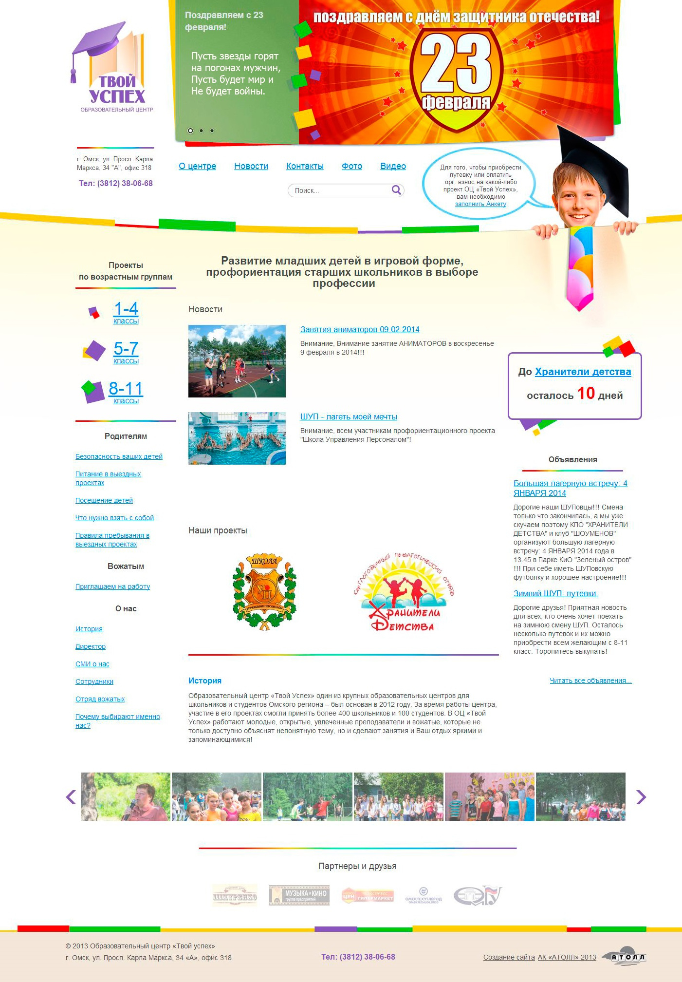 Работа с детьми — основное, что надо осветить на новом сайте. А также на сайте будет новостная лента мероприятий на предстоящие каникулы или выходные, агитация присоединиться к летним проектам команды. А чтобы как-то расшевелить долгодумающих, зацепили счетчик обратного отсчета времени до очередного сбора детей и вожатых! А еще, конечно, собраны фотографии с вылазок, видео-ролики веселых эстафет и серьезных семинаров. В дизайне сделали упор на детскую, юношескую аудиторию. Для детей и их родителей вытащили поближе иконки проектов с привязкой к возрасту. Подцепили переходы на группу ВКонтакте и добавили возможность комментировать статьи со своего аккаунта. Получился живой информационный портальчик! ))) Небольшой, но всё же вполне рабочий! Подарок мужской части коллектива к 23 февраля!