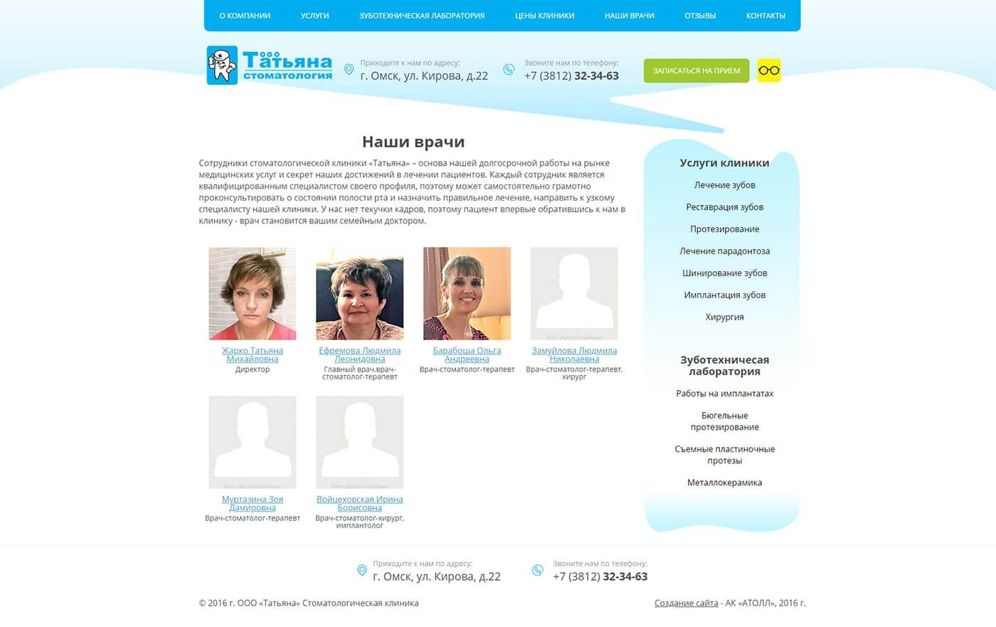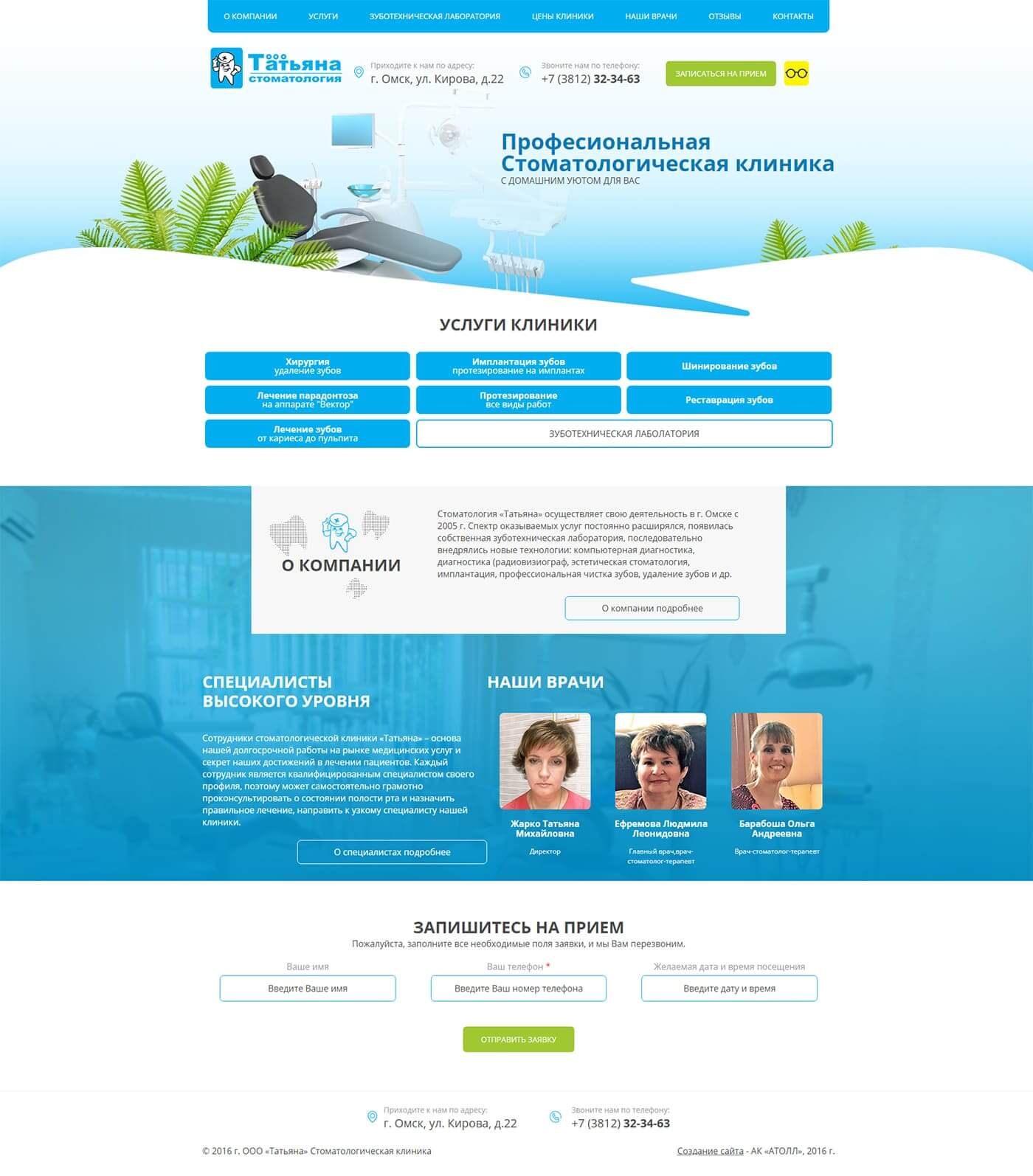 Медицинский сайт-визитка "Стоматология Татьяна" - АК "Атолл"