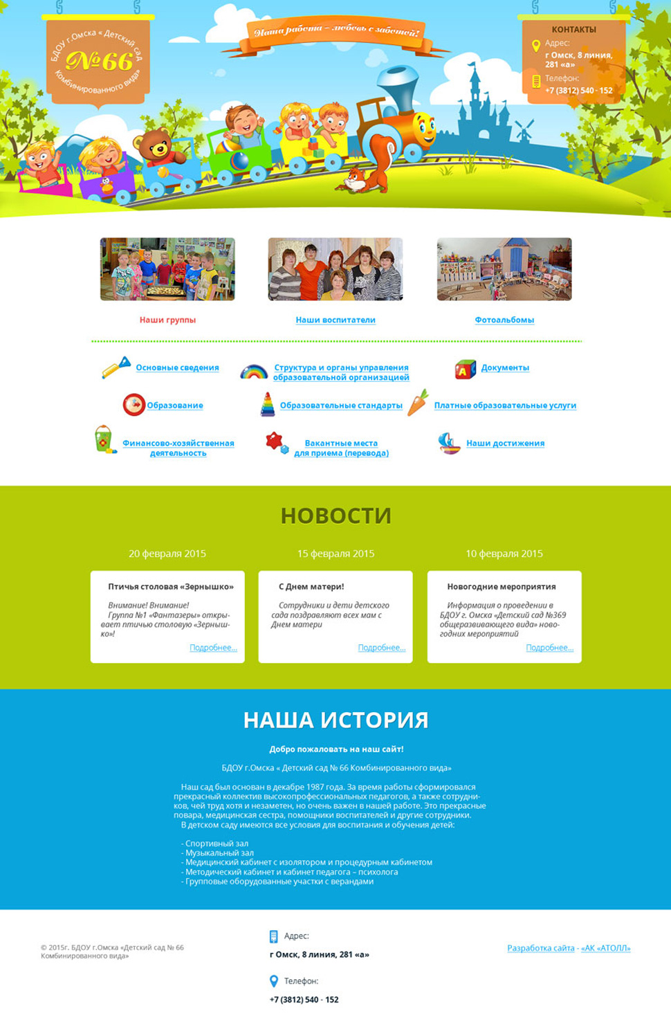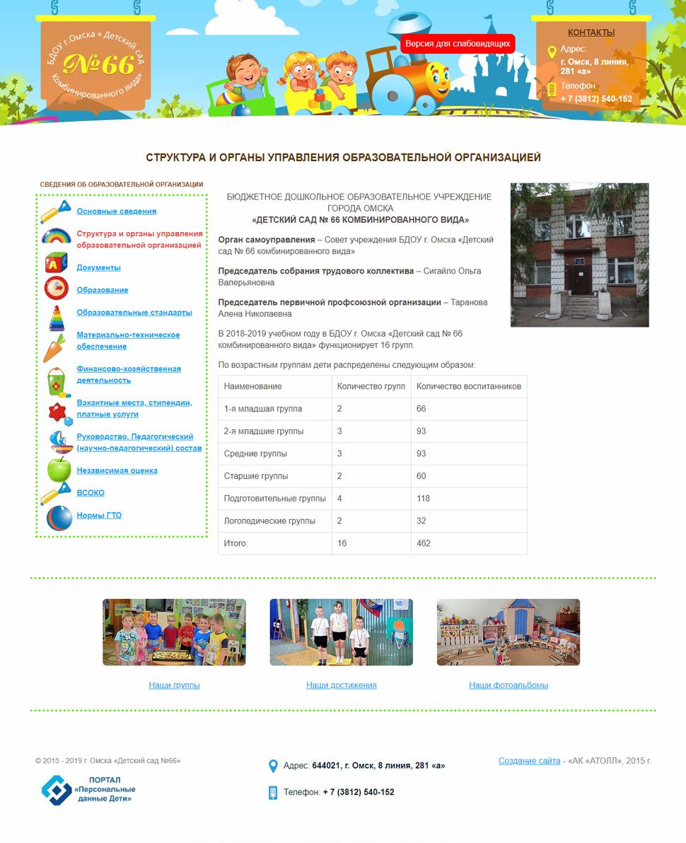 Образовательный сайт-визитка БДОУ "Детский сад №66"