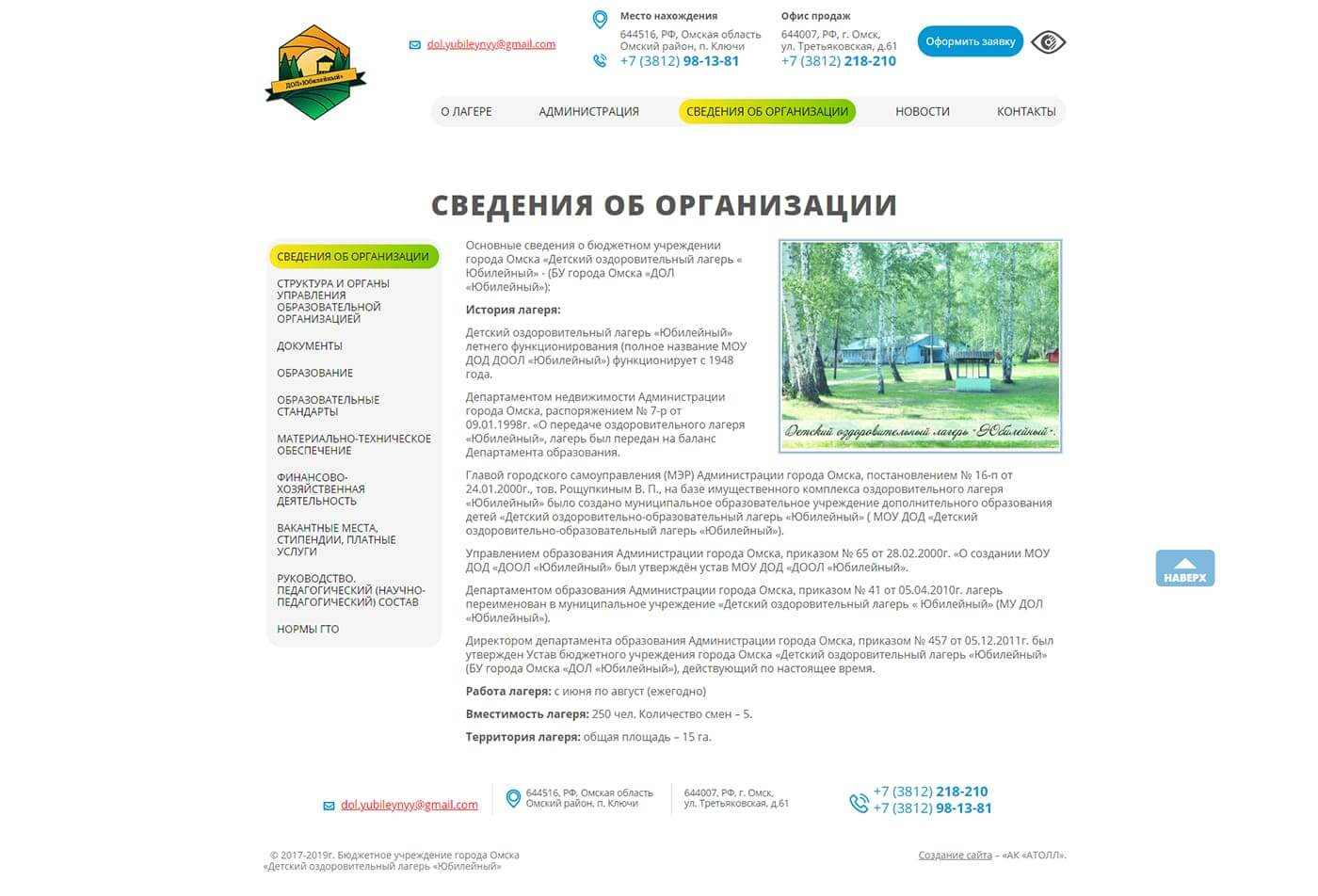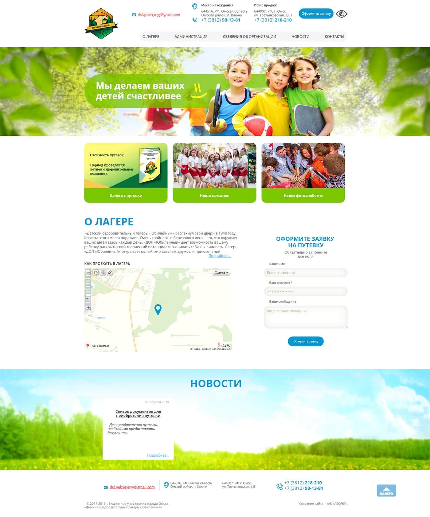 Сайт-визитка "Детский оздоровительный лагерь "Юбилейный "