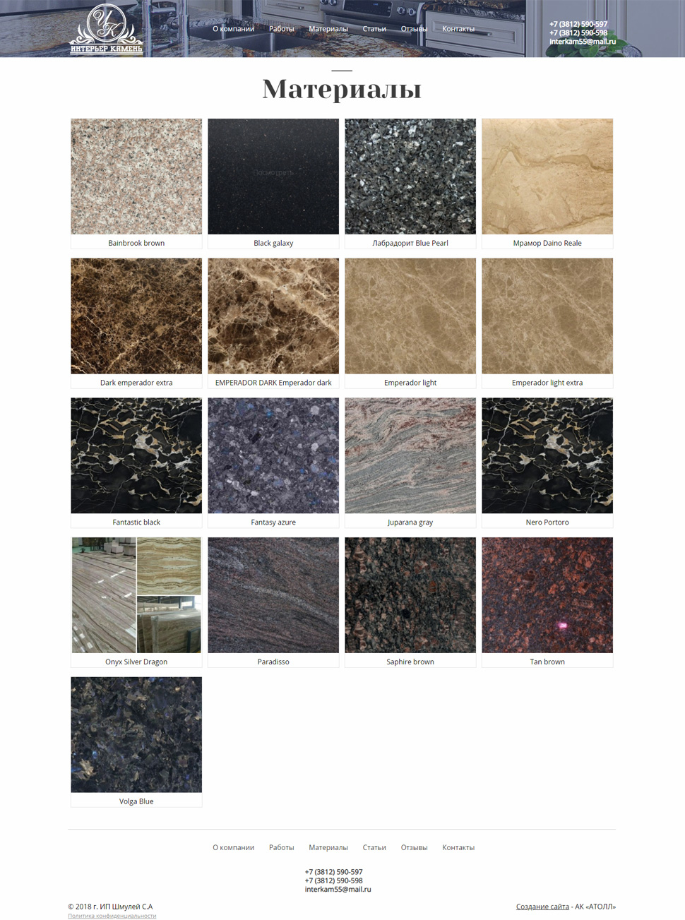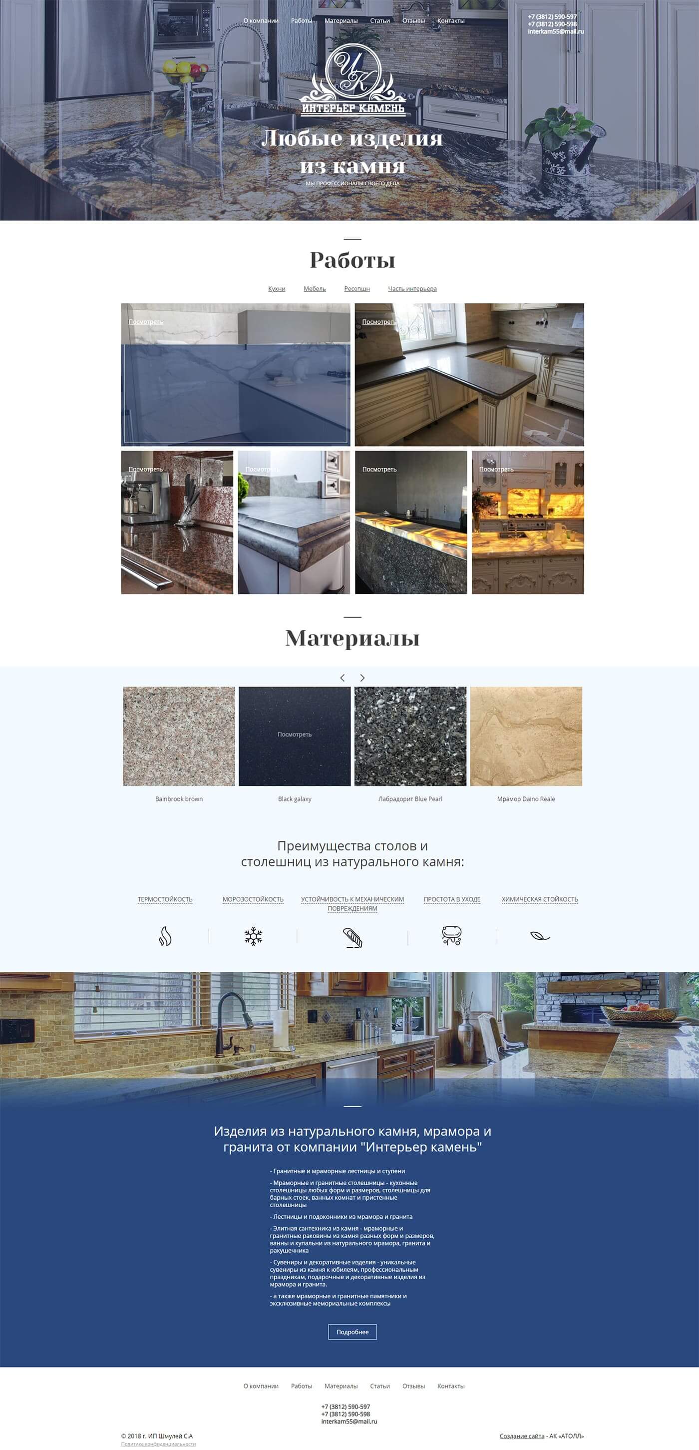 Сайт-визитка мебели под заказ "Интерьер камень"