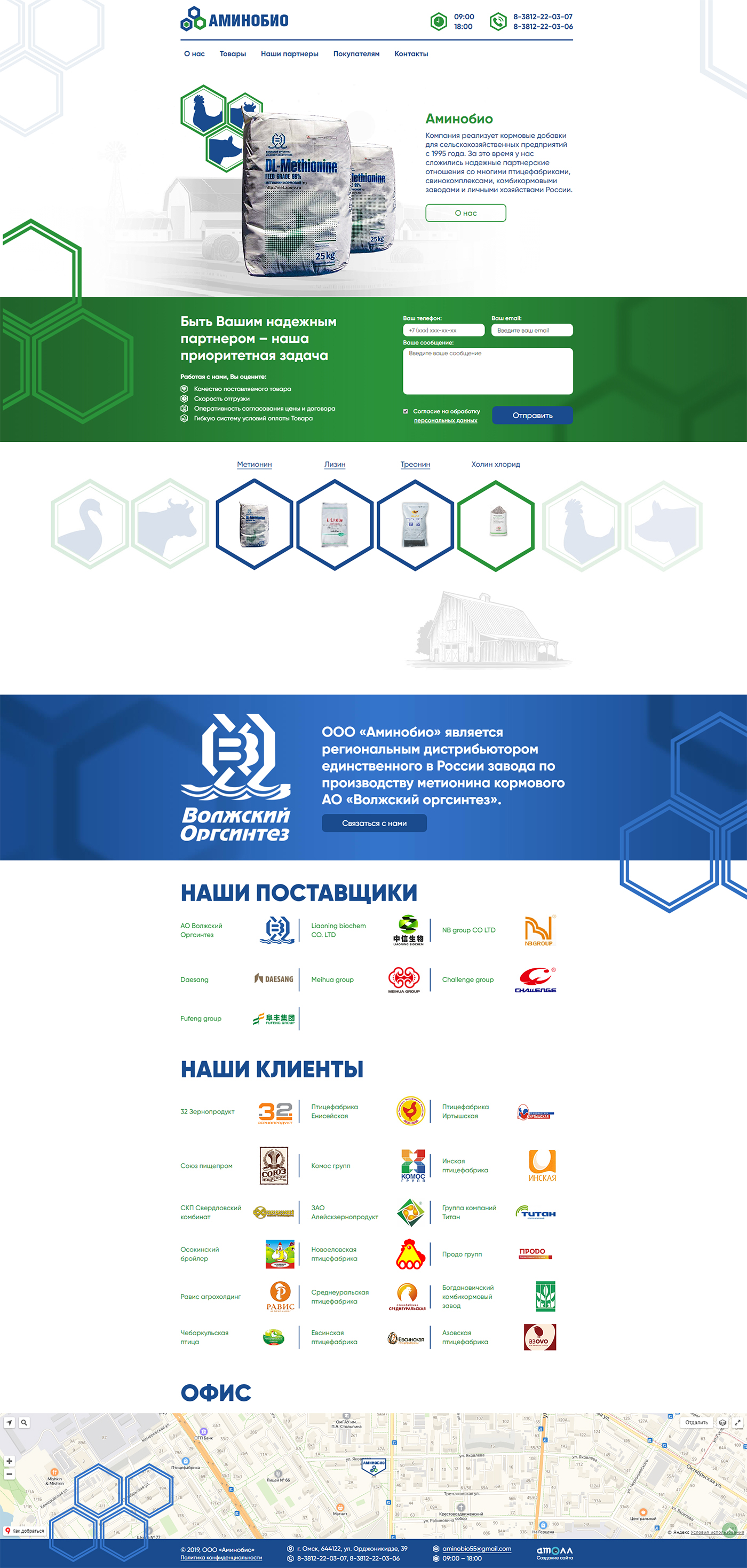 Сайт-визитка с/х кормов компании "Аминобио"
