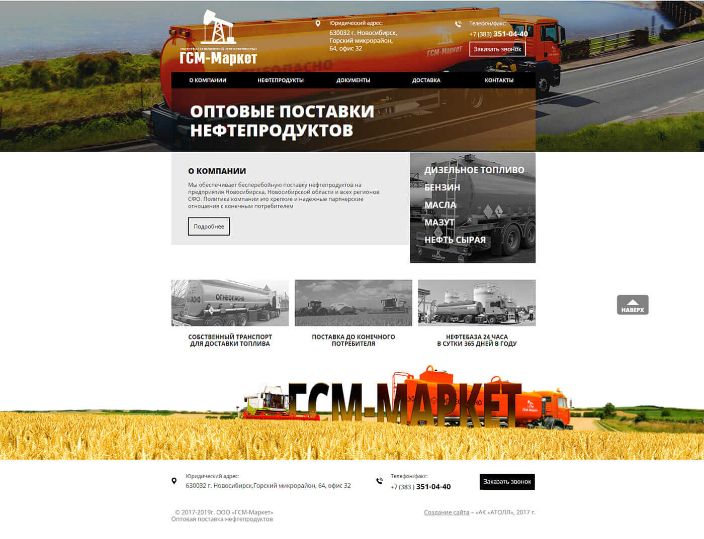 Сайт-визитка топливная компания "ГСМ-Маркет"