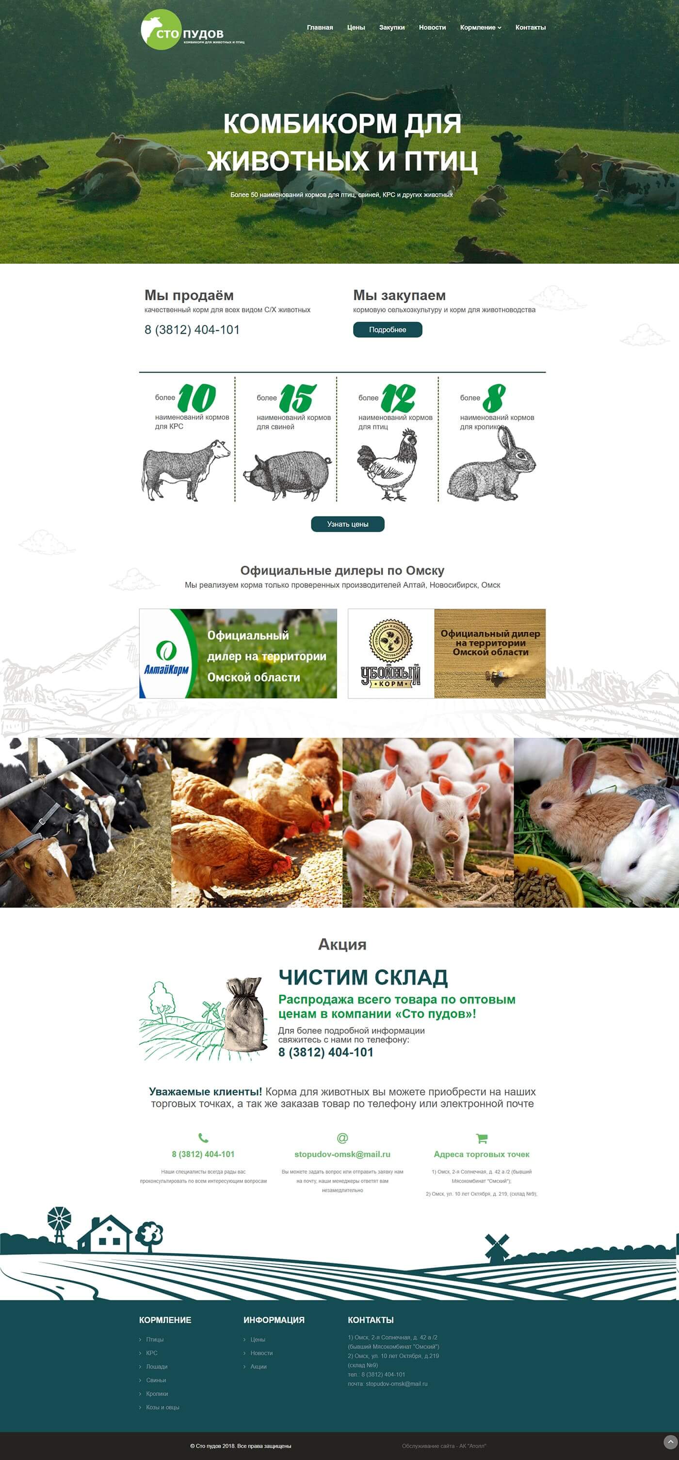 Редизайн и полная модернизация страниц о ценах на корм для с/х животных, баннер дилера низких цен